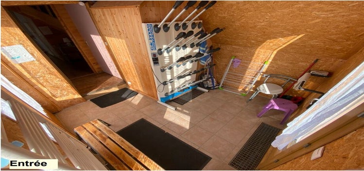 Le chalet est composé d'une cuisine équipée d'une cuisinière avec four electrique, frigo de 120l avec congélateur de 50l, un lave vaiselle et toute la vaisselle nécessaire ainsi que les différents ustensiles, grill pain, appareil à raclette, grill, appareil à fondue...